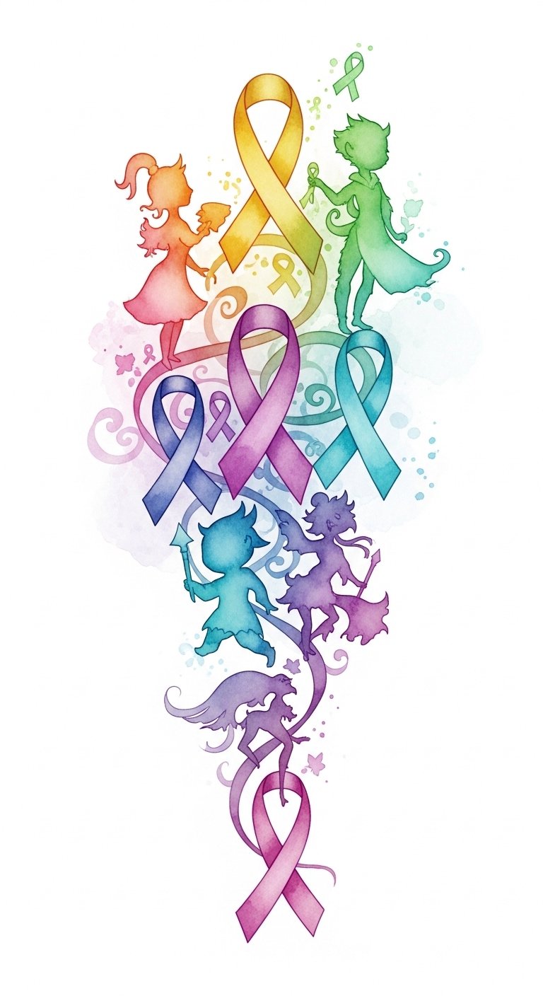 This design honors the whimsy of the original text through symbolic elements: the honey pot represents warmth and comfort, the balloon signifies hope and lightness, Tigger’s motion captures joy and resilience, and Eeyore’s calm presence acknowledges quiet strength.
