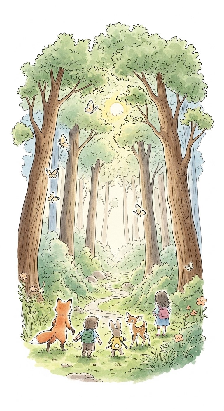 This concept channels innocence, wonder, and belonging — the woods as refuge, characters as companions on life’s small quests. Use soft watercolor washes for nostalgia, fine-line detail for characters and foliage, and a circular or armband placement to suggest a continuous journey; ideal spots include the forearm, shoulder blade, or calf where the scene can wrap and invite interaction.