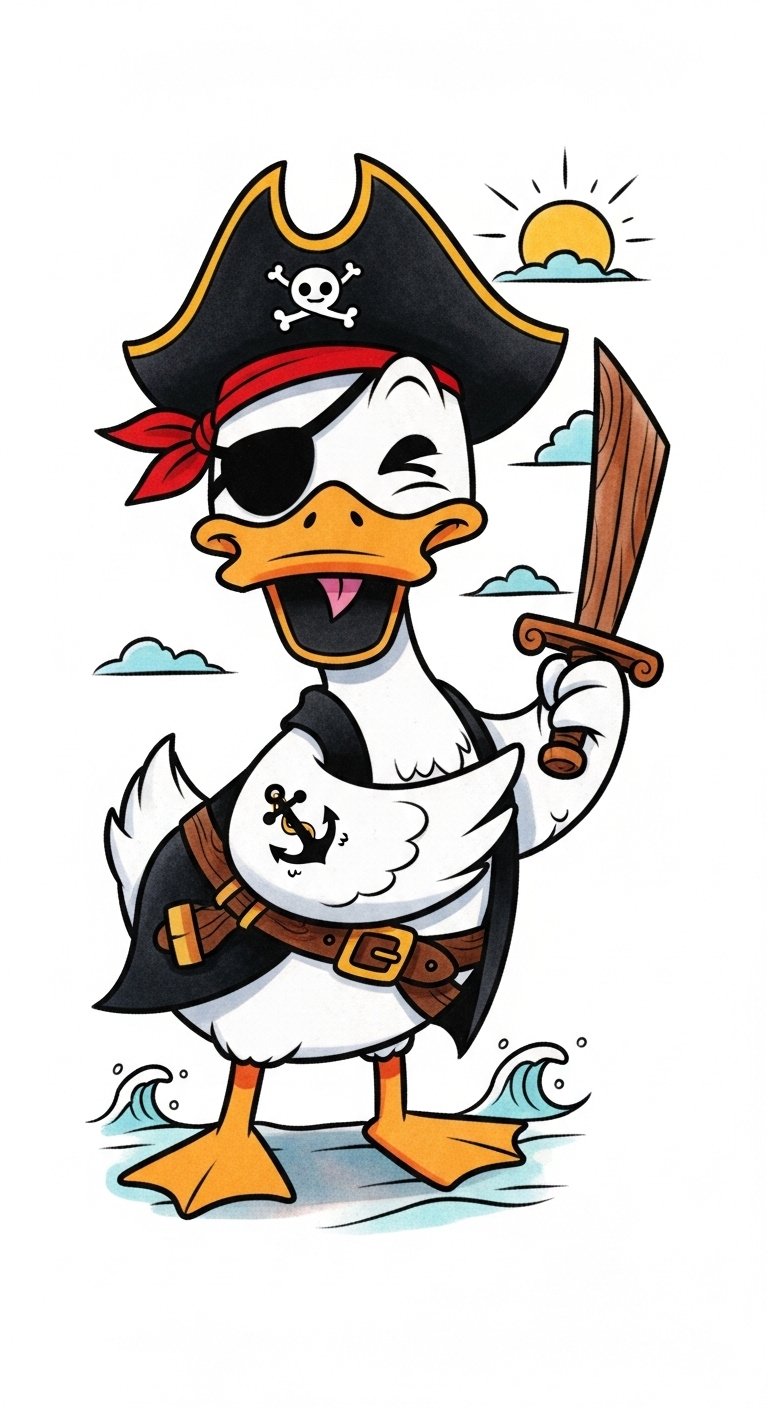 Playful Cartoon Duck in Pirate Attire