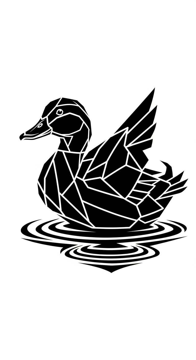 Symbolically, the duck represents adaptability, emotional balance, and journeying between worlds; the geometric shapes emphasize structure, individuality, and modernity.
