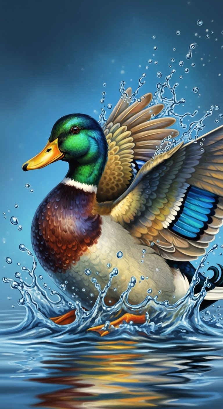 Vibrant Duck With Splashing Water Effects