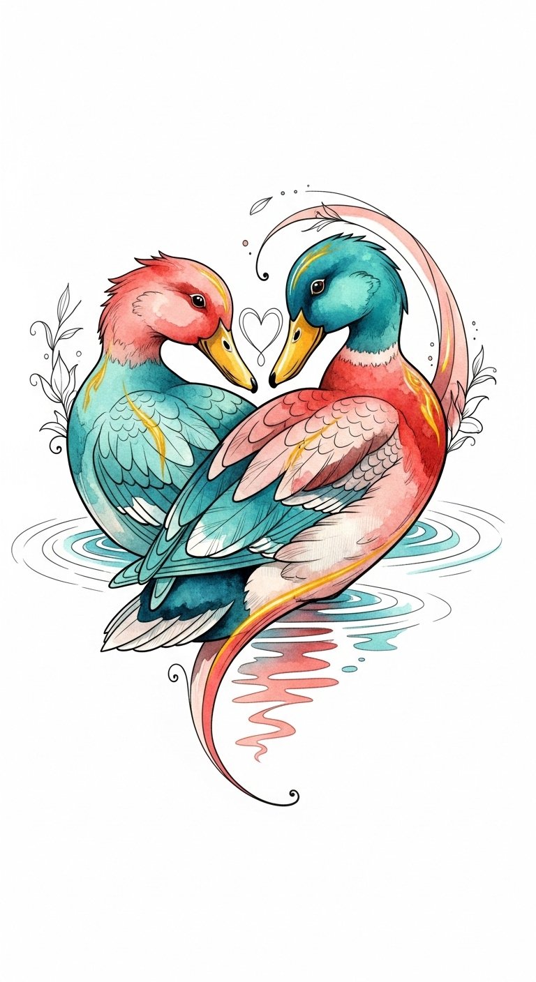 Love and unity come alive in a tattoo design featuring a pair of ducks, symbolizing the deep bond shared between partners.