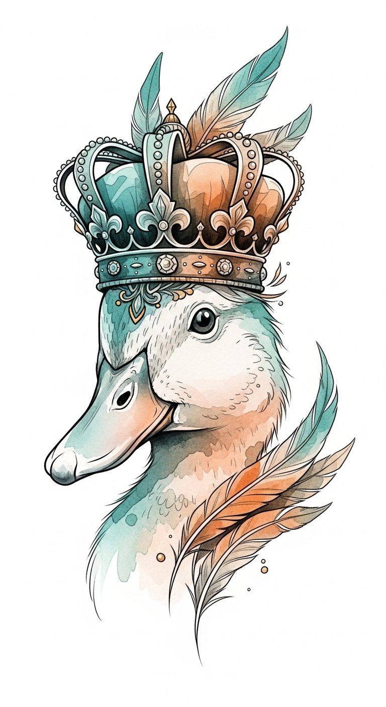 The crown’s significance reflects your desire for freedom and individuality, effortlessly combining whimsy with sophistication. A duck with a crown is more than art; it’s an empowering statement.