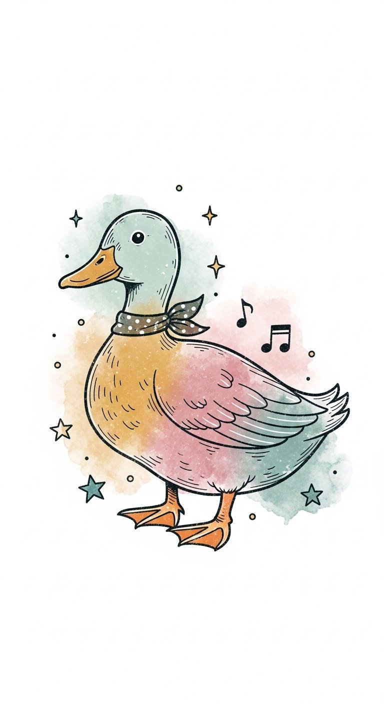 Picture a delightful duck adorned in faded pastel shades, capturing that timeless retro style. Each hue tells a story, celebrating freedom and playfulness, reminding you to cherish life’s simple joys while standing out with a touch of artistic flair.