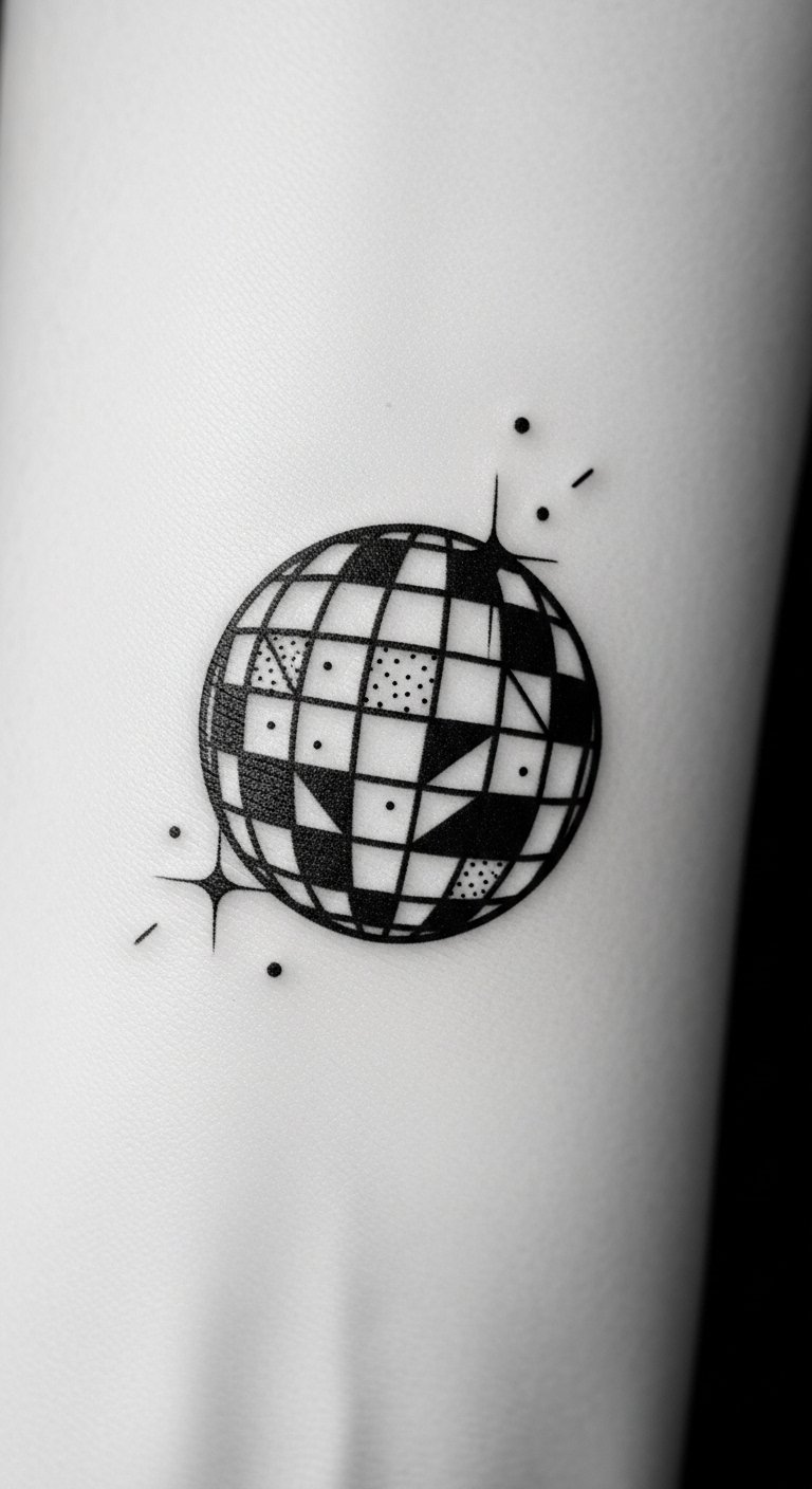 A minimalist disco ball tattoo captures the essence of this iconic symbol with simplicity and elegance.