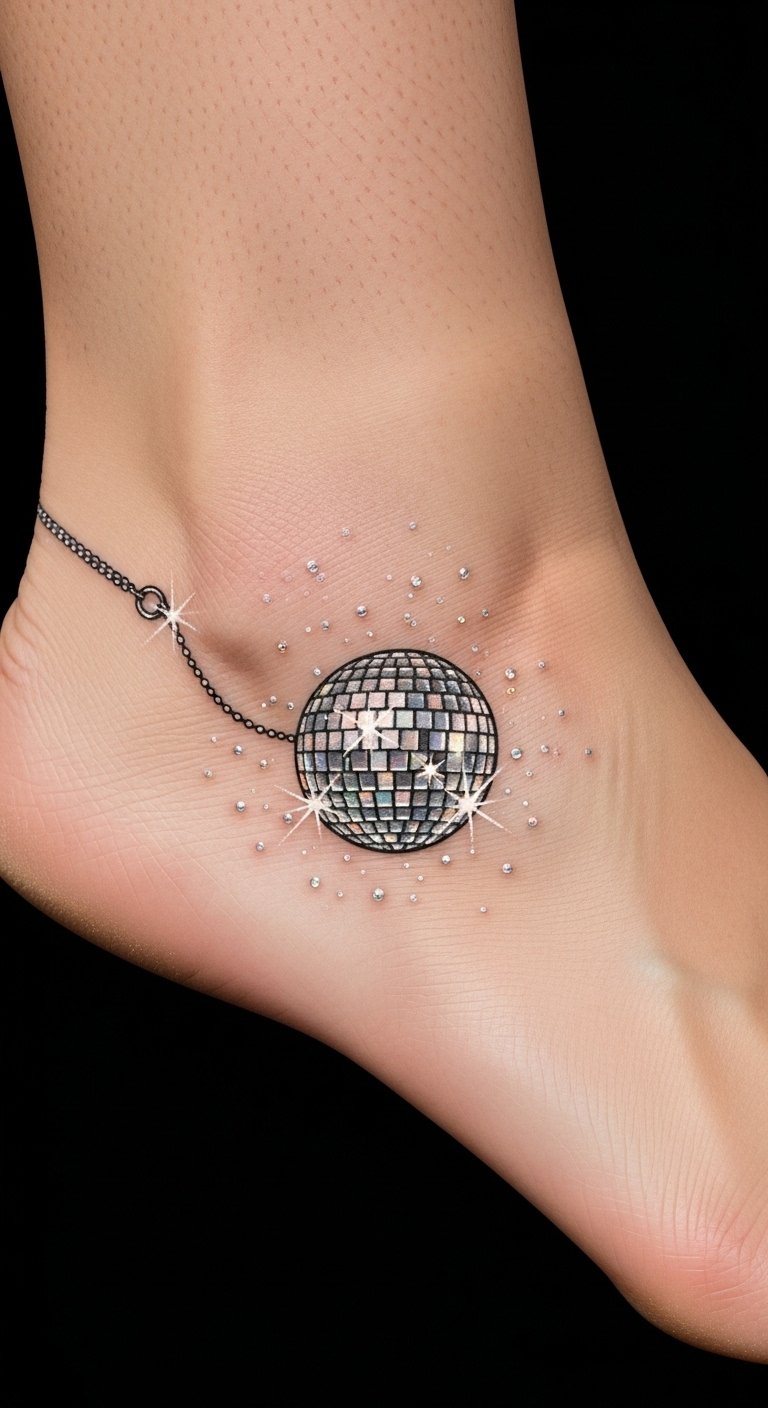 Ankle disco ball tattoos are a dazzling celebration of individuality and rhythm, perfect for those who want to strut their style with flair.