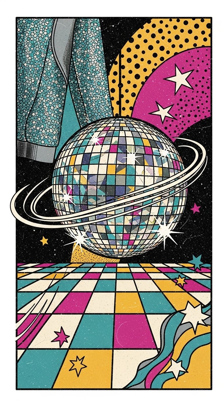 Embrace retro fashion with glittering outfits, bold colors, and funky patterns. This aesthetic celebrates freedom and self-expression, allowing you to shine brightly, just like those dazzling disco balls spinning above the dance floor.