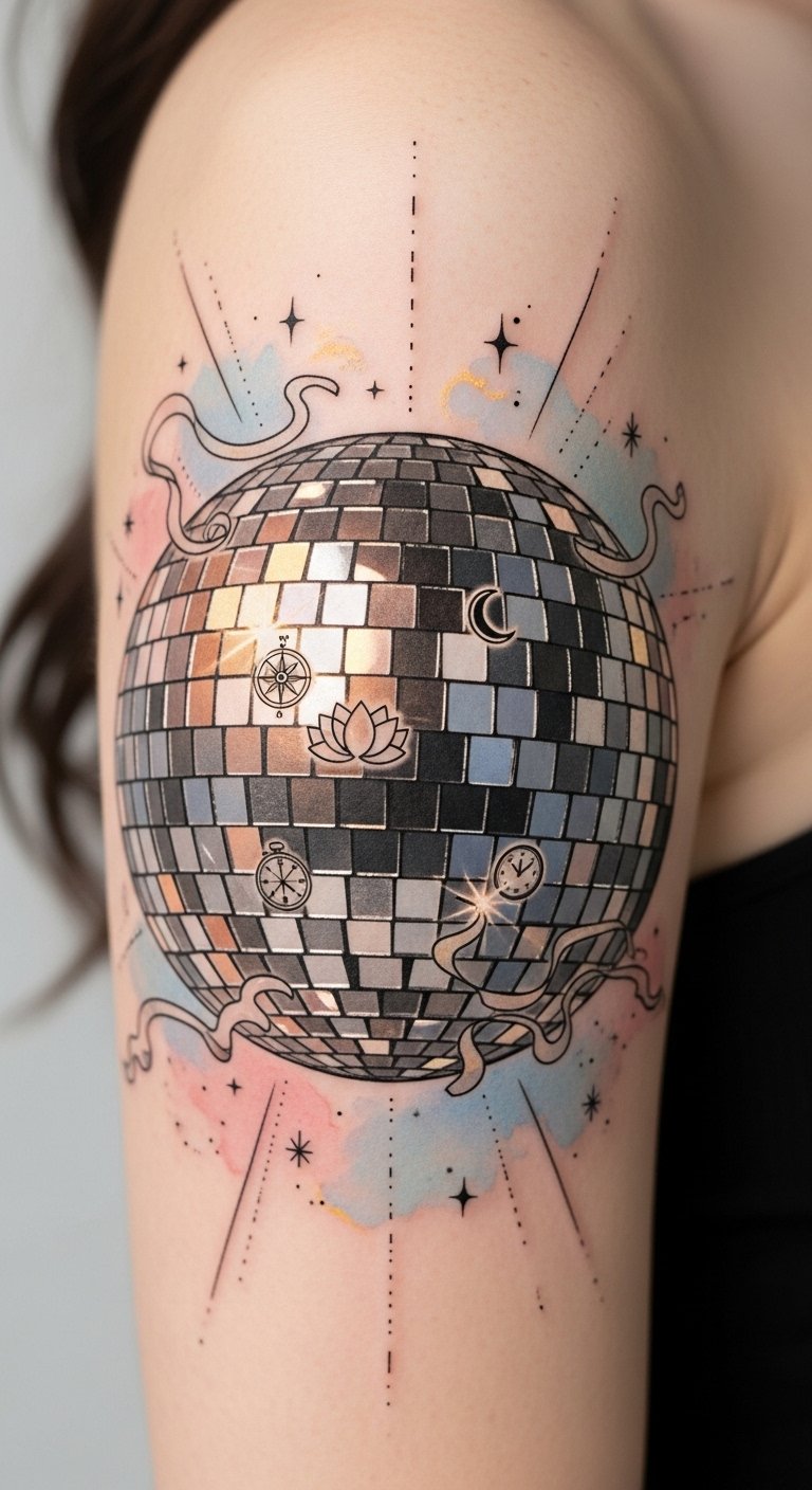 Celebration isn’t just about community; it’s also a powerful expression of individual freedom and self-identity. Your disco ball tattoo can symbolize personal liberation and artistic expression, sparking identity exploration and emotional release.