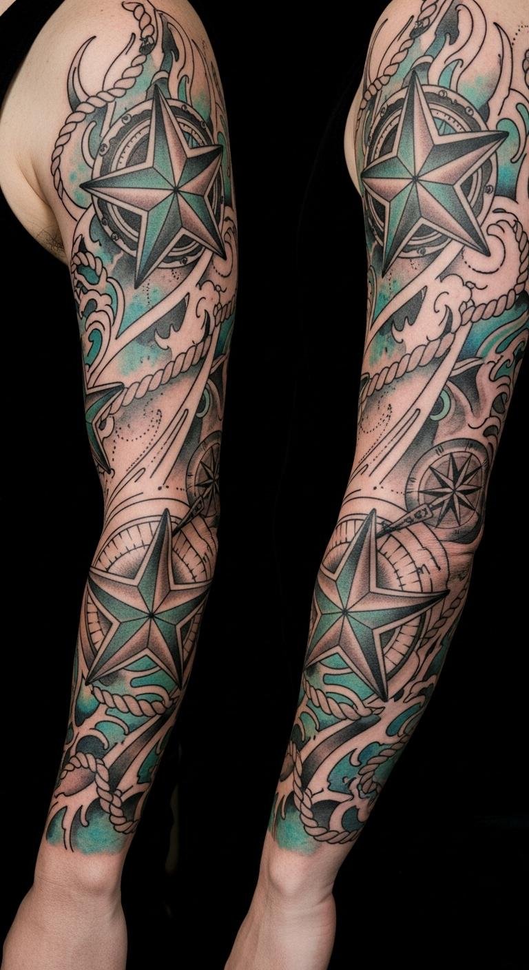 Sleeve tattoos featuring nautical stars create a stunning canvas that tells a story of adventure, guidance, and personal growth.
