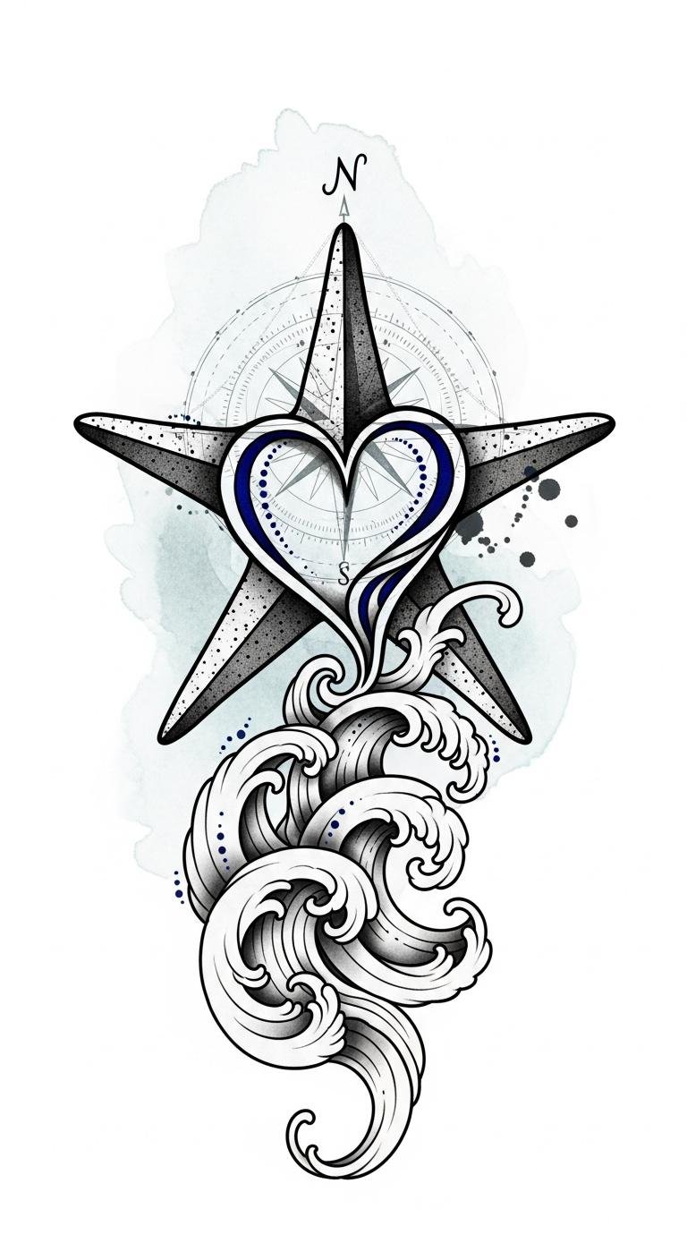 Blending the nautical star with a compass rose creates a powerful emblem of navigation and adventure, enhancing the symbolism of guidance and direction in your life.