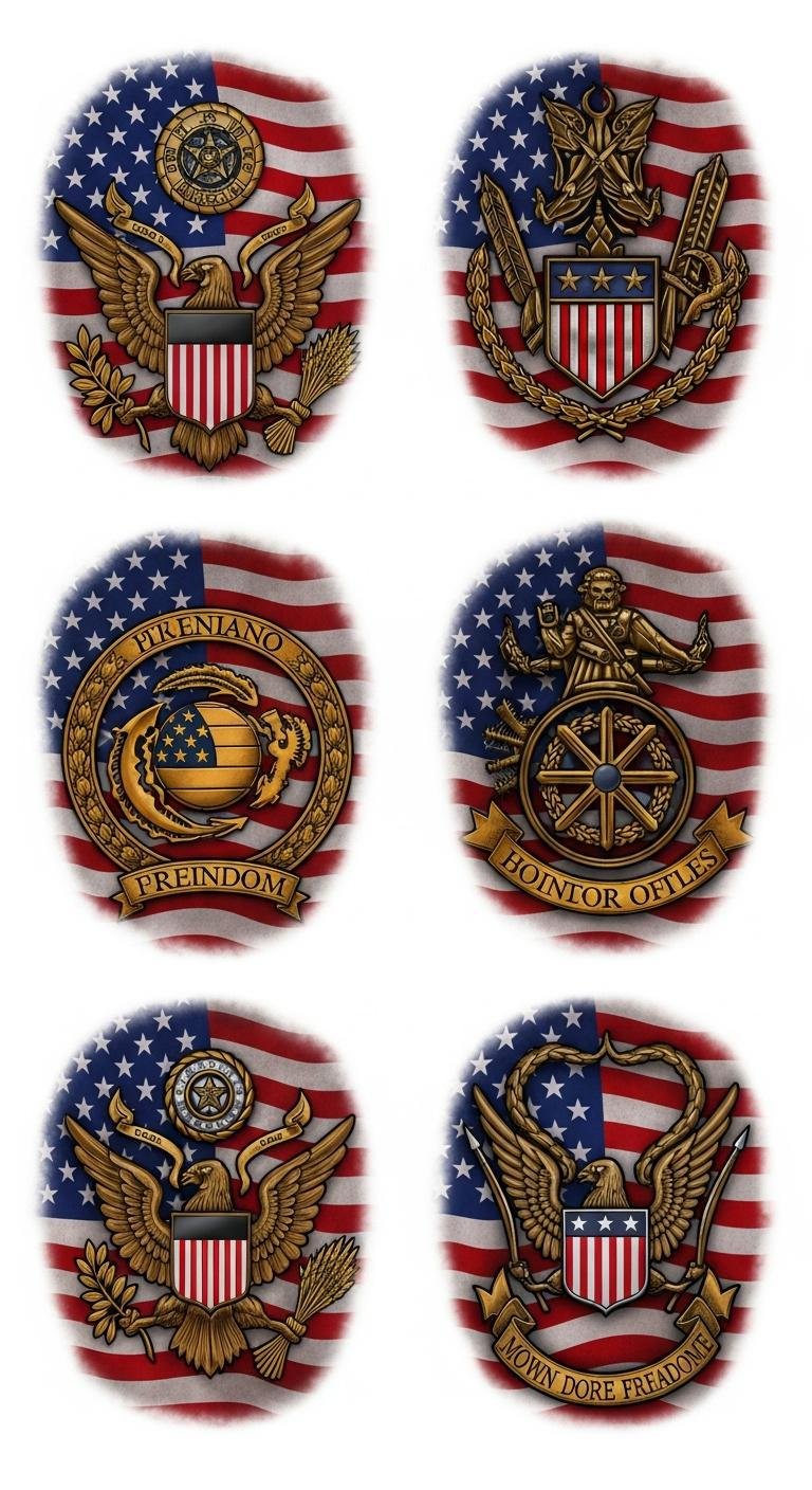 Military Emblems With American Flag
