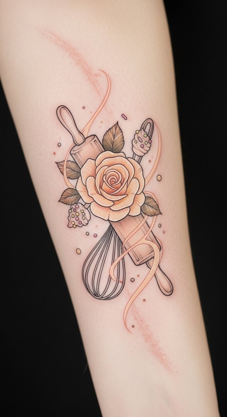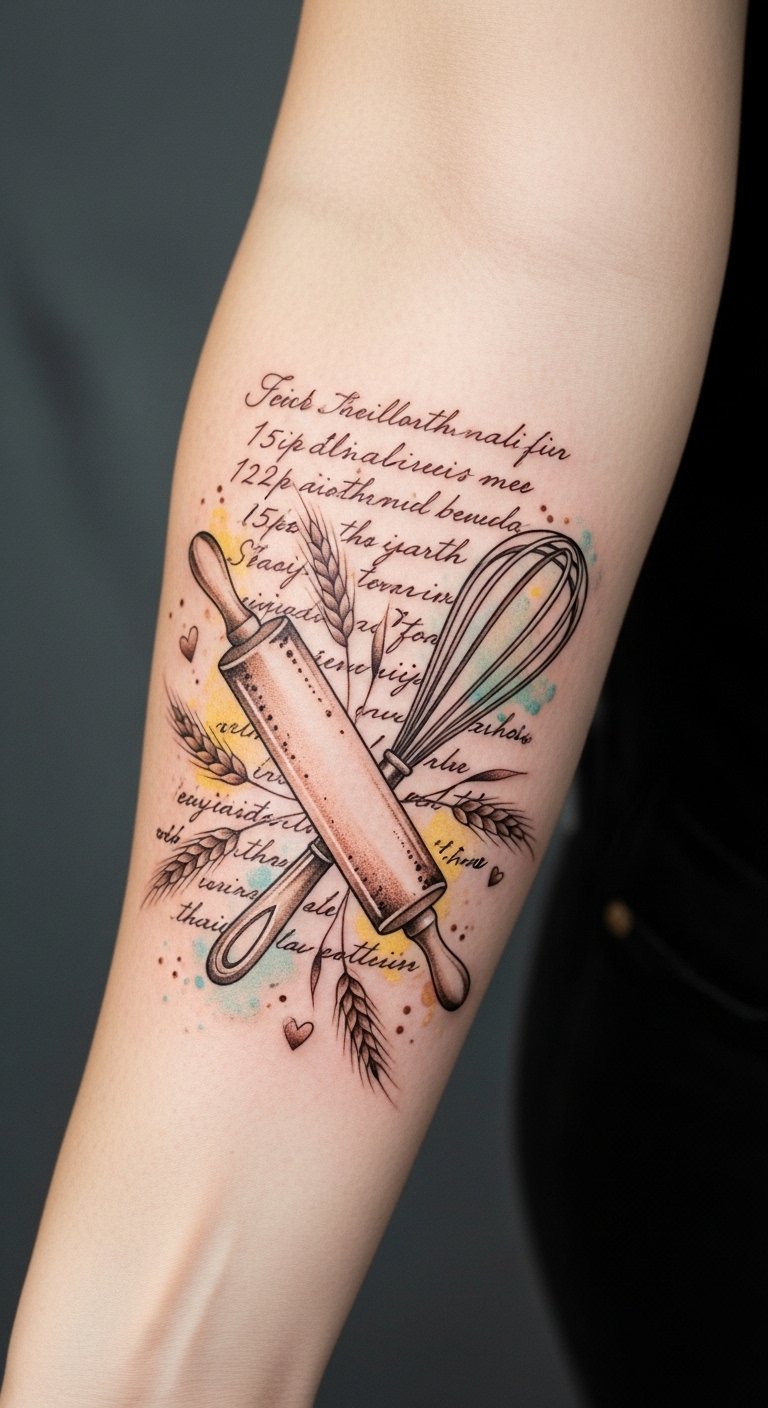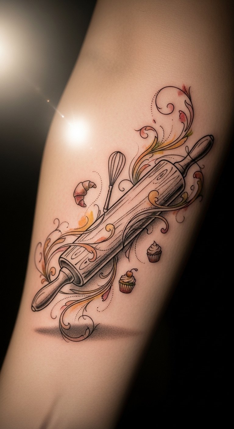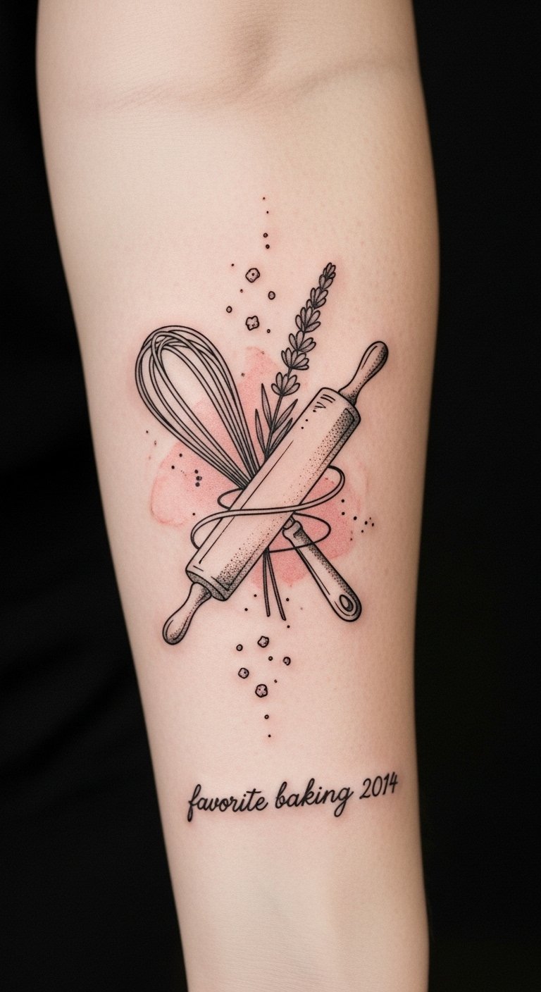 Imagine inking culinary symbols like rolling pins or whisks onto your skin, each design telling a story.