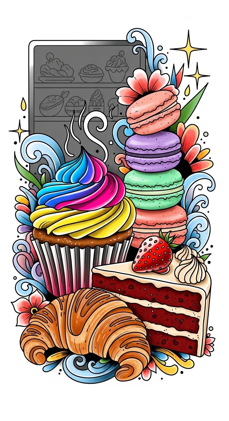 Neo-Traditional Bakery Art: Vibrant and Bold