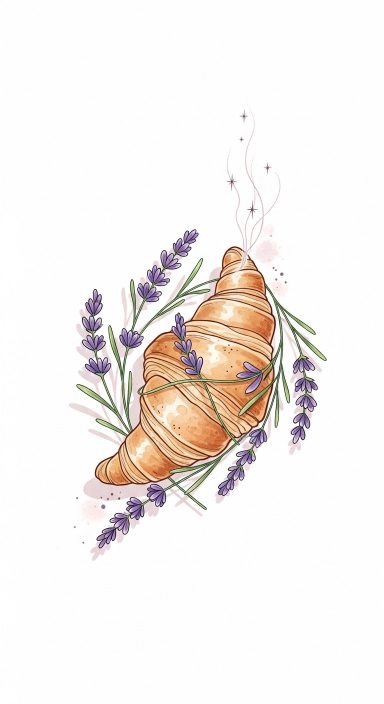 The croissant symbolism represents indulgence, while the lavender infusion brings a serene balance. Together, they remind you to savor life’s simple pleasures.