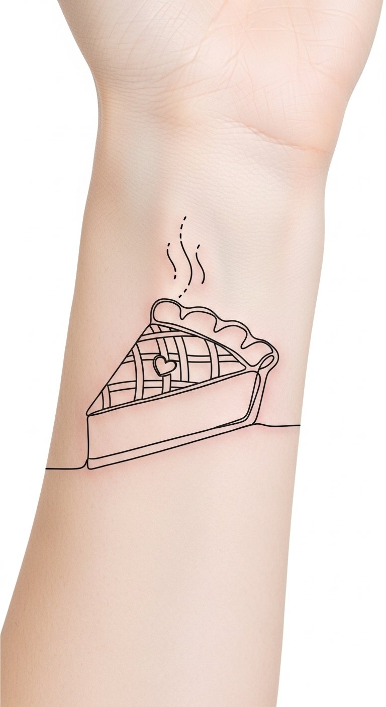 Shifting from the vibrant hues of a watercolor peach pie tattoo, minimalist pie slice line art offers a strikingly different yet equally enchanting approach to body ink. Embracing minimalist tattoo techniques, you can express your love for pie through simple, elegant lines.
