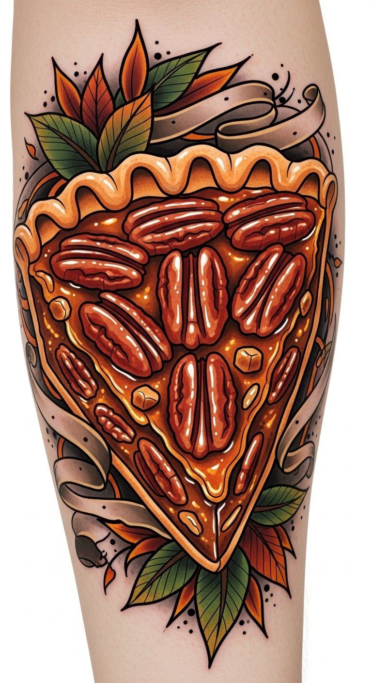 Indulging in the rich, nutty appeal of a neo-traditional pecan pie tattoo can transform your love for this classic dessert into a stunning piece of body art.