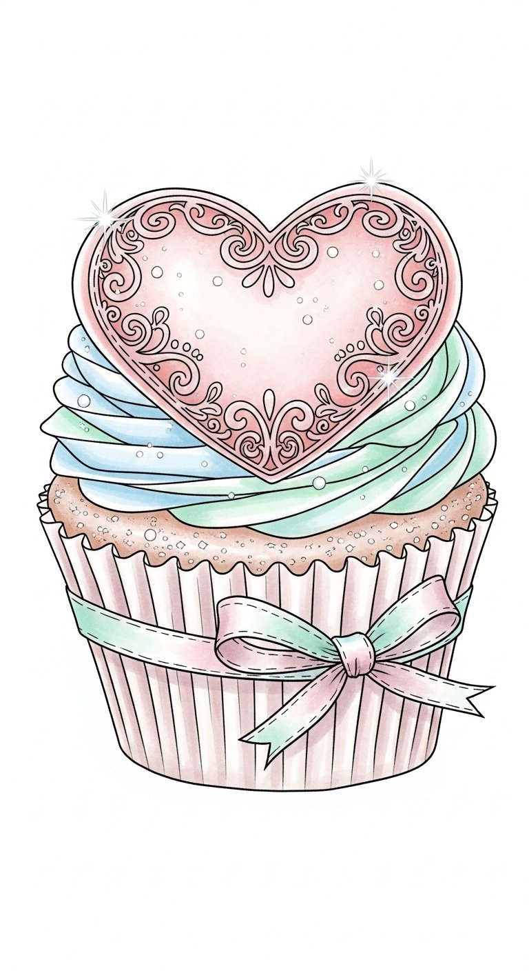 The fusion of hearts and cupcakes creates a delightful symbol of love and indulgence, capturing the essence of sweet moments shared with those you cherish.