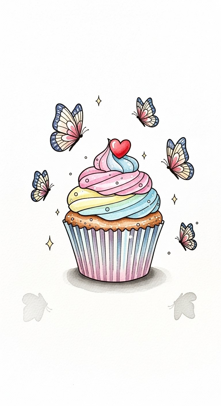 A delightful cupcake surrounded by butterflies creates a whimsical tableau that sparks joy and imagination. This enchanting design celebrates cupcake symbolism, representing sweetness and indulgence, while butterflies signify transformation and freedom.