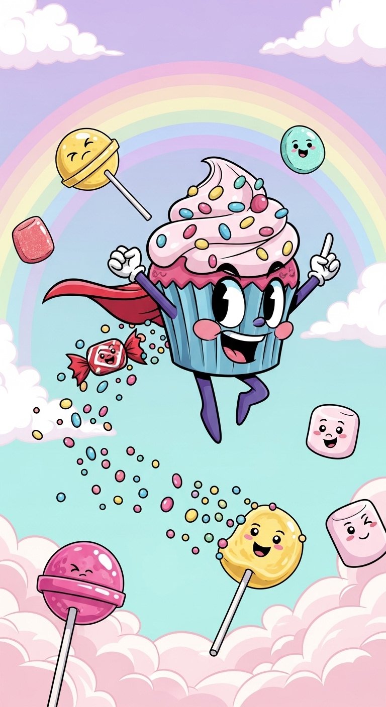 This tattoo concept uses the described whimsical cupcake character as a playful, colorful focal point—bold linework, saturated pastels, and subtle shading make it pop like a sticker. Surround it with tiny accent elements (confetti, musical notes, or a small banner) to emphasize joy and movement. Symbolically it represents lightheartedness, freedom, and self-expression; emotionally it conveys warmth, nostalgia, and a reminder to celebrate small pleasures. Ideal placements: forearm or calf for visibility, shoulder blade or ribcage for a more personal, intimate mark.