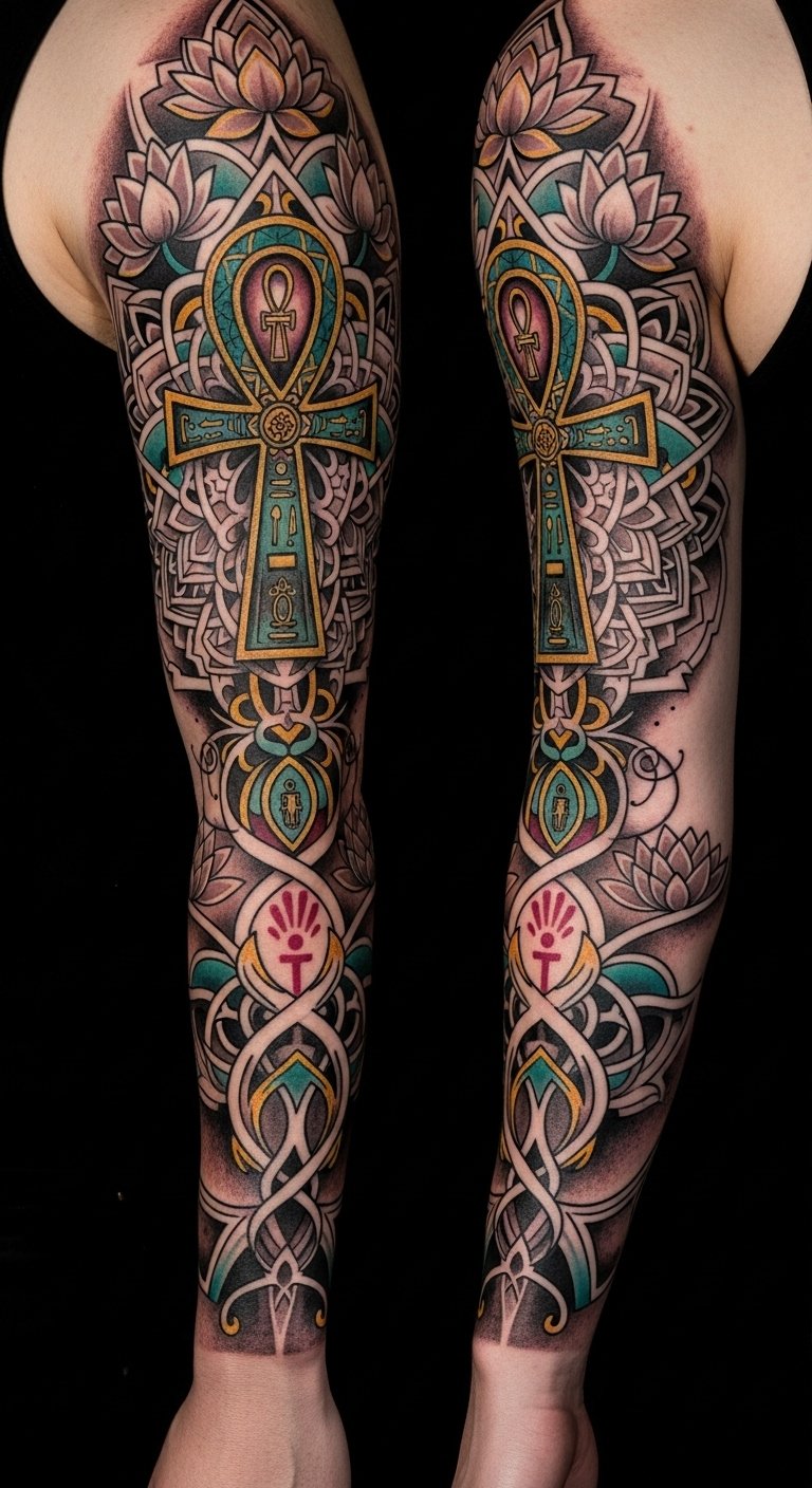 Intricate Ankh Sleeve Tattoos for Bold Statements
