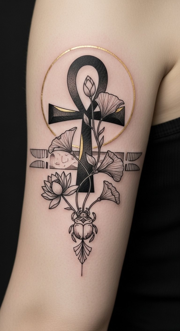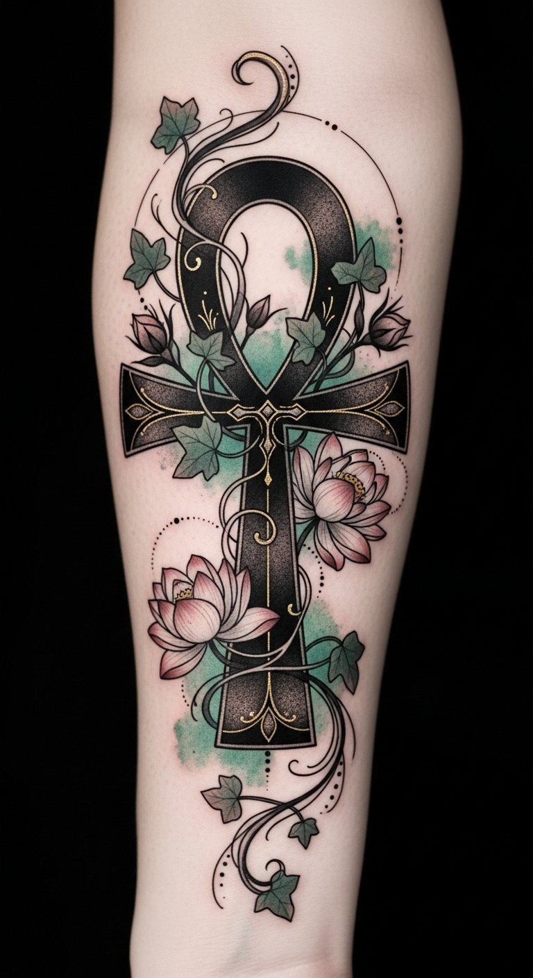 Incorporating floral elements into your ankh tattoo not only enhances its aesthetic appeal but also deepens its spiritual resonance. The ankh floral design symbolizes life’s beauty and renewal, intertwining nature’s essence with eternal significance.