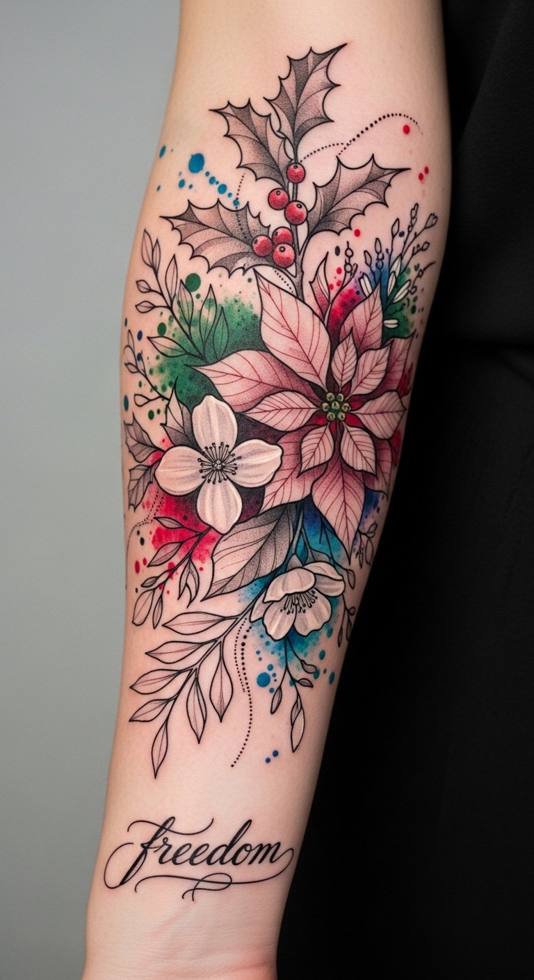 Choosing to place a tattoo on your forearm not only enhances visibility but also creates a personal statement that’s hard to ignore. With every glance, you embrace your unique story and celebrate the beauty of December’s blooms.
