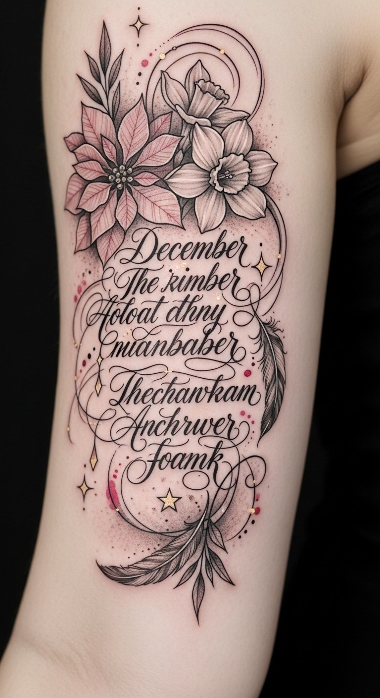 When you infuse your December birth flower tattoo with a meaningful quote, it transforms into a canvas of personal expression that resonates deeply.