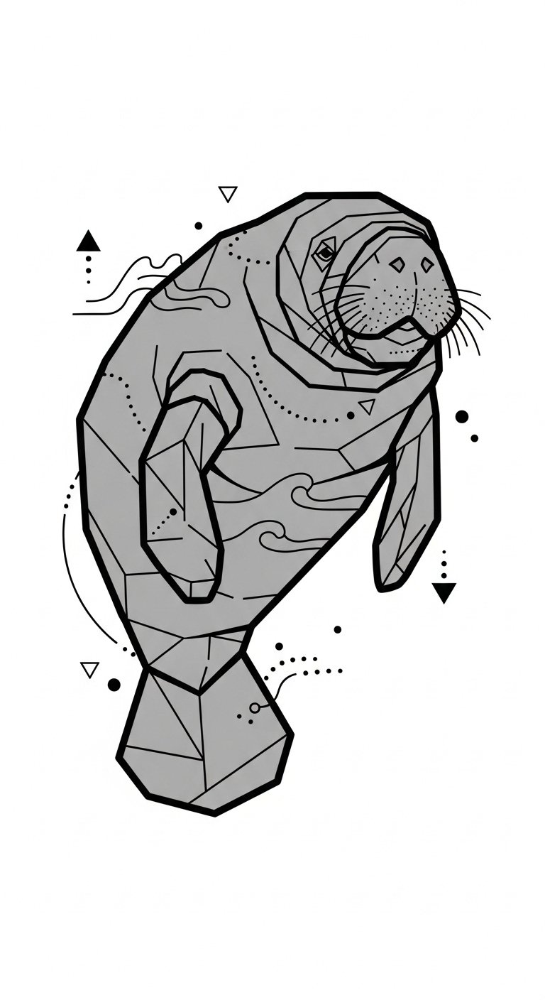 Geometric manatee shapes offer a modern twist on traditional tattoo artistry, transforming the gentle essence of these marine mammals into striking visual forms.