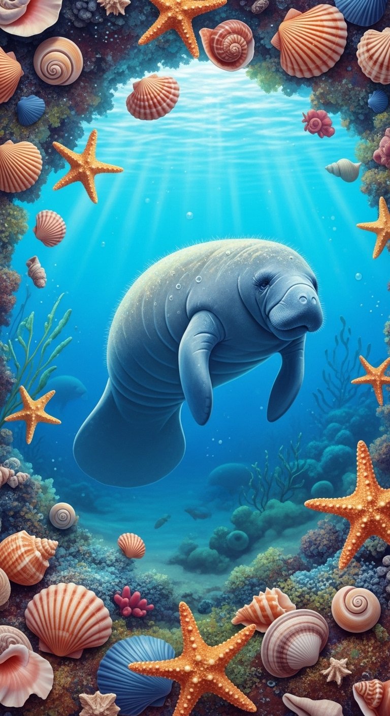 This celestial manatee design not only reflects the gentle spirit of the manatee but also embodies manatee symbolism meanings like harmony and peace.
