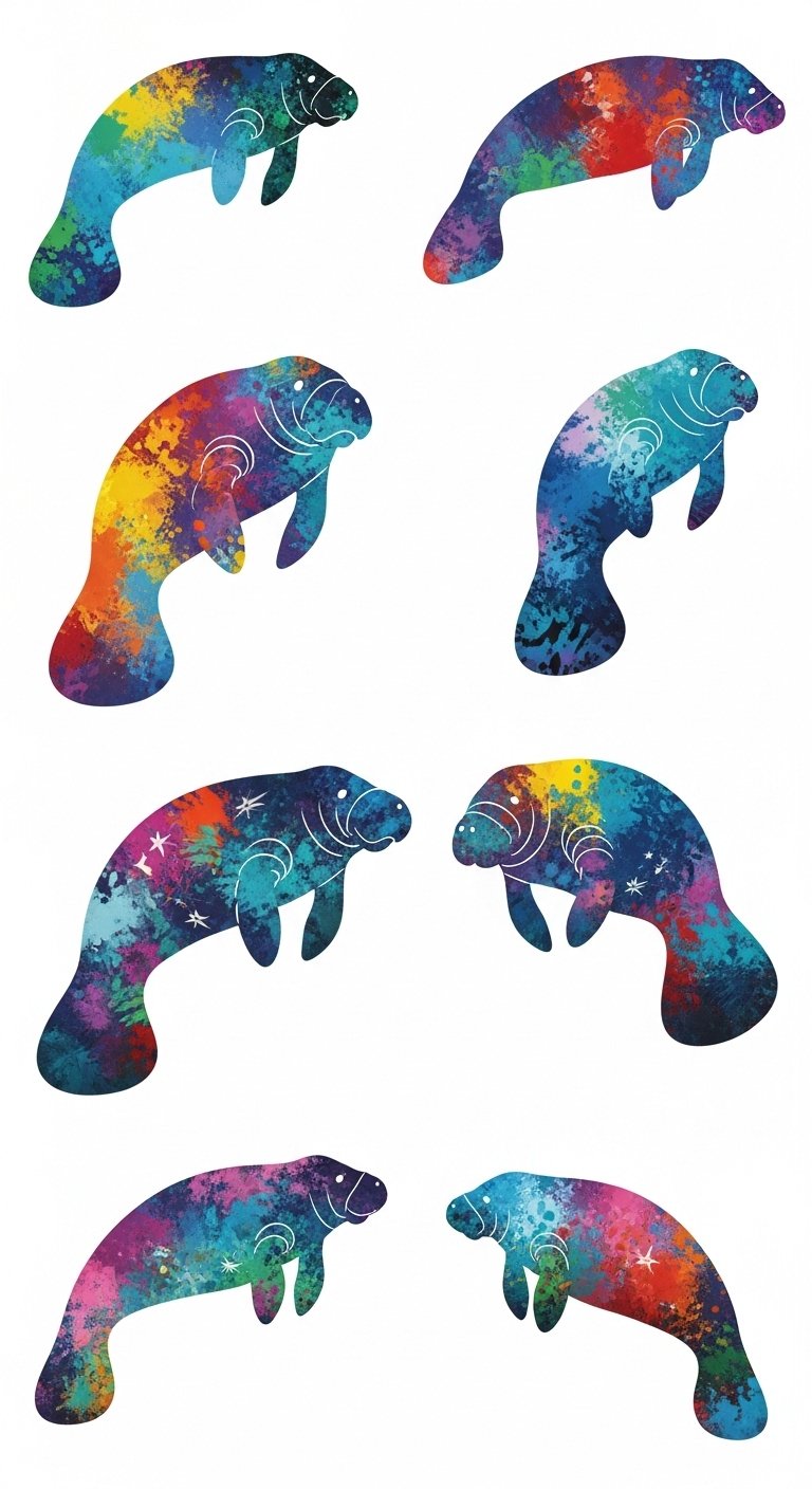 Flowing from the serene beauty of manatees in dreamlike settings, abstract manatee designs offer a bold interpretation that captures the essence of these gentle giants in a unique way.