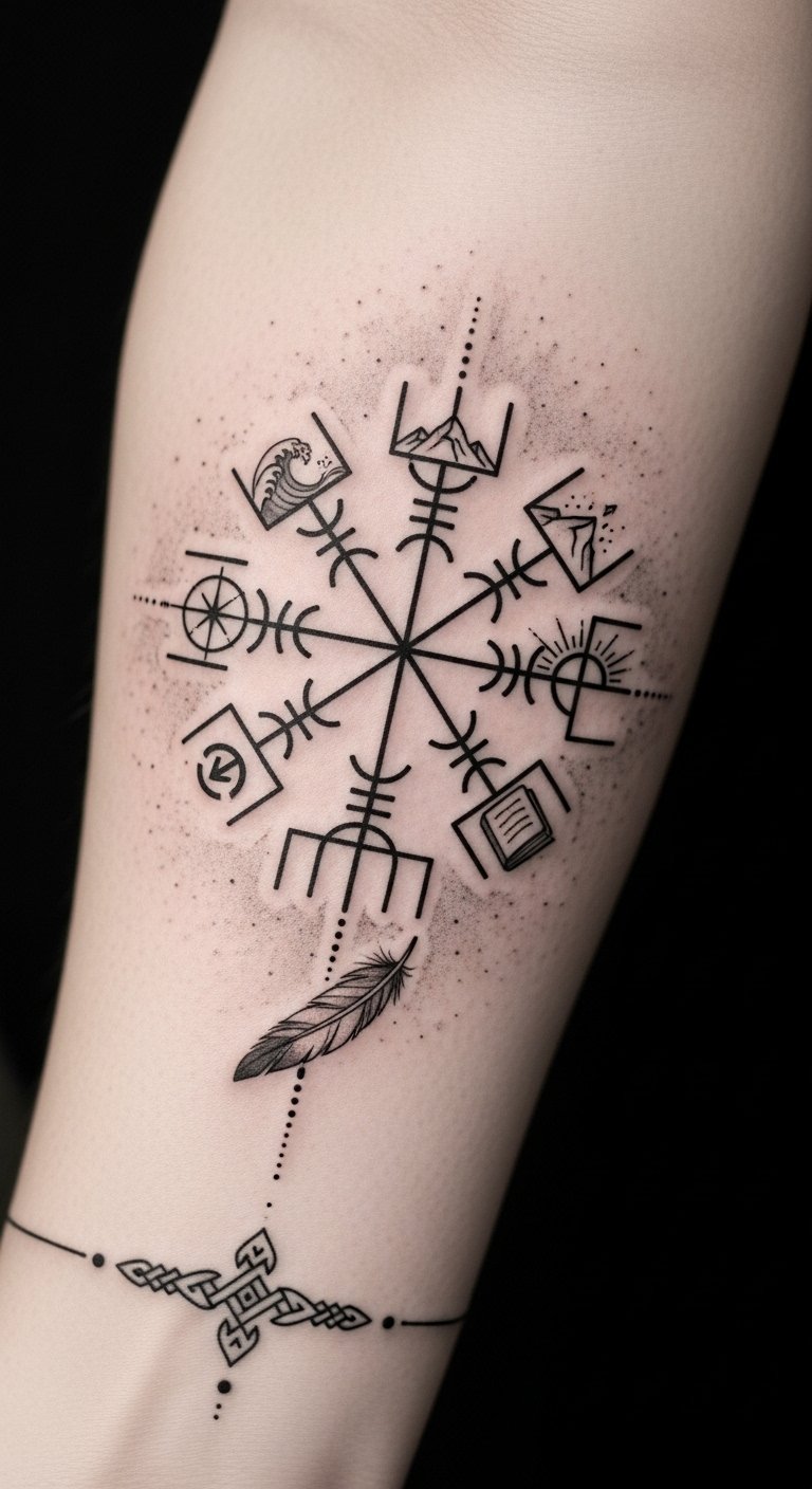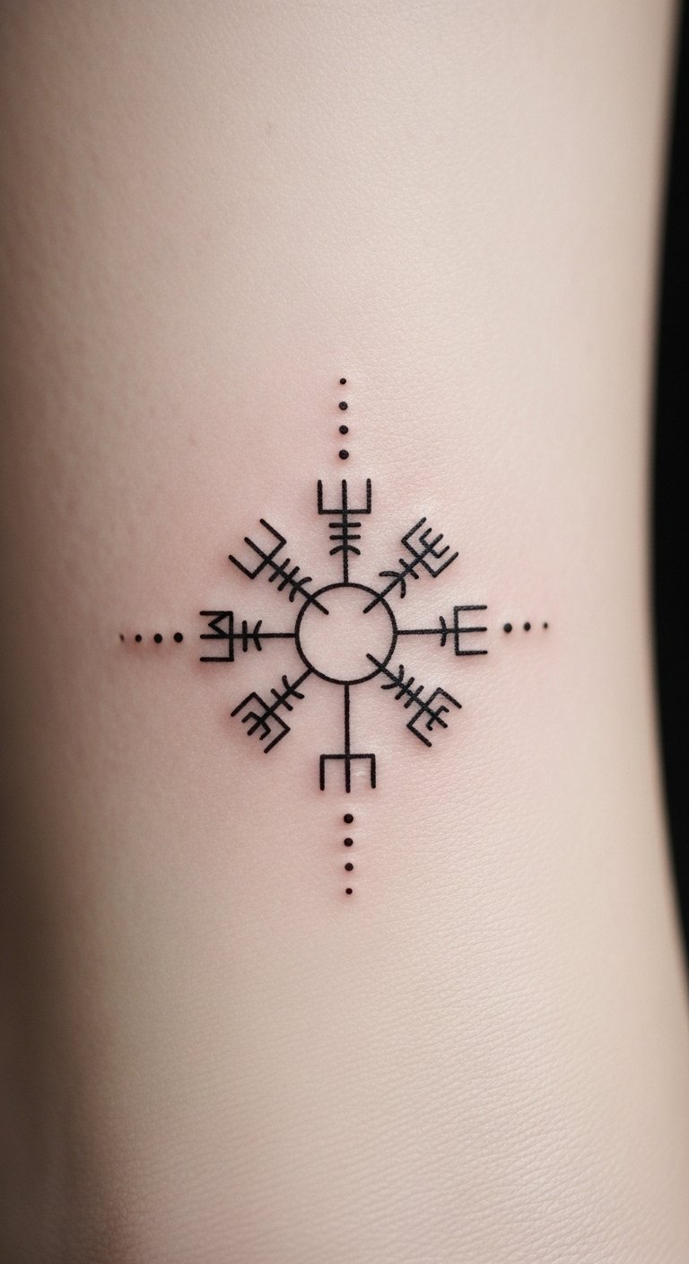 Ideal minimalist Vegvísir placement includes the wrist or ankle, serving as a daily reminder of guidance and freedom.