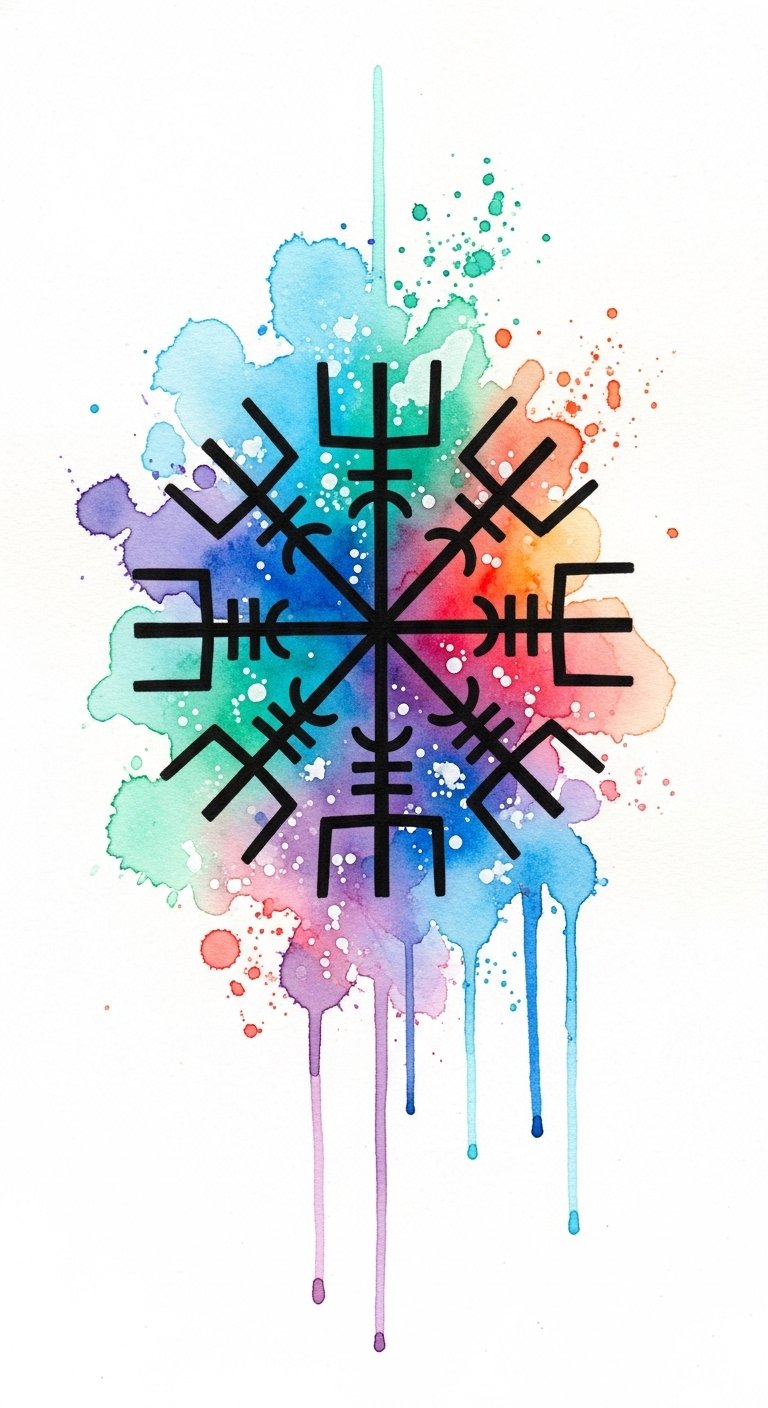 Utilizing various watercolor techniques, artists blend colors that evoke emotion and personal meaning, enhancing the tattoo’s symbolism. Each brushstroke captures your journey, transforming the Vegvísir into a vibrant beacon of guidance, freedom, and spiritual connection, inviting you to navigate your path with confidence.