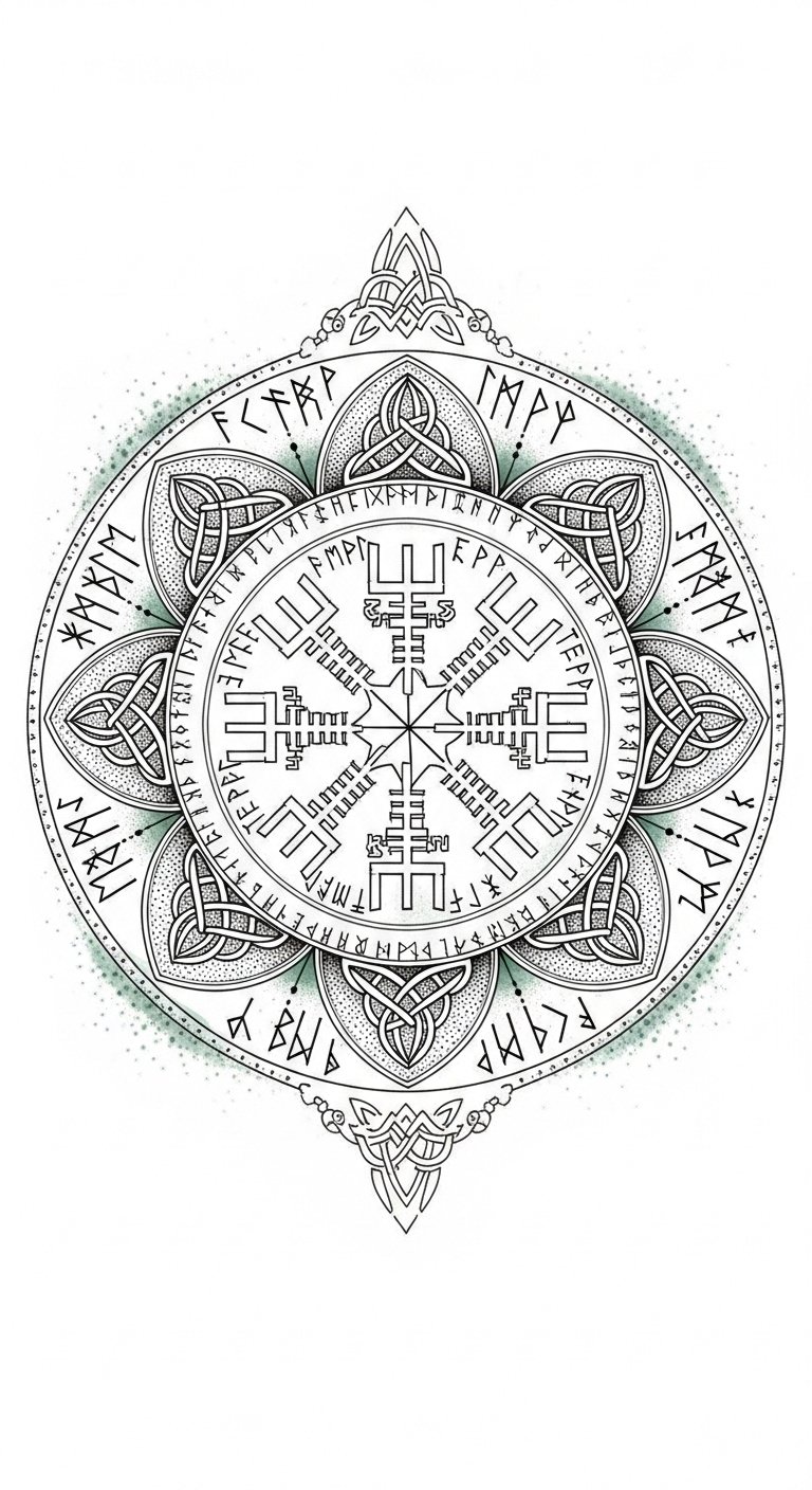 Blending the Vegvísir with mandala elements creates a mesmerizing fusion of ancient symbolism and intricate artistry.