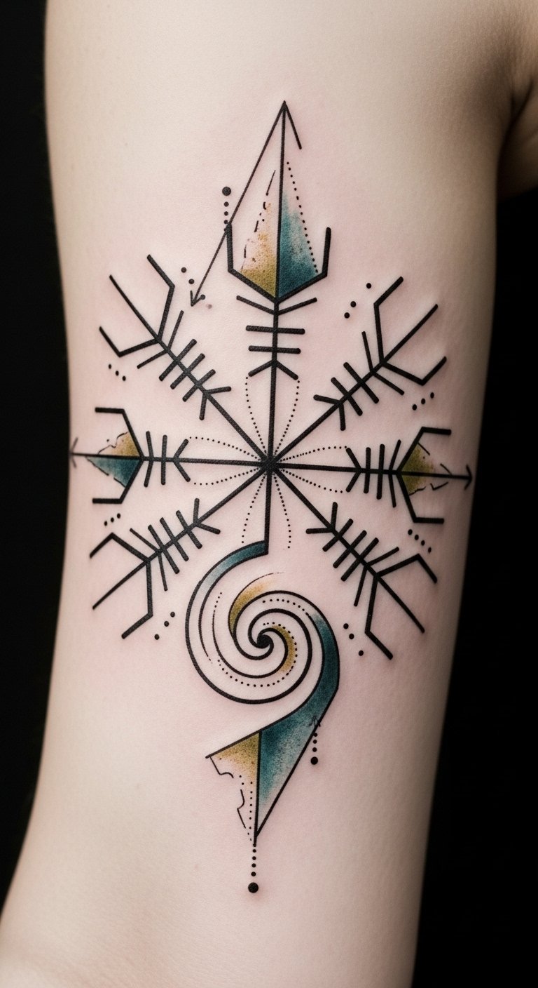 Abstract interpretations of the Vegvísir tattoo offer a fresh perspective on this ancient symbol, transforming its intricate design into a contemporary statement.