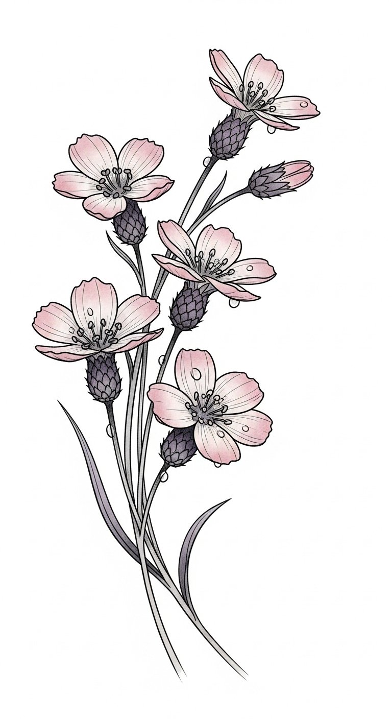 Corncockles, with their gentle pink and purple hues, embody a spirit of simplicity and new beginnings.