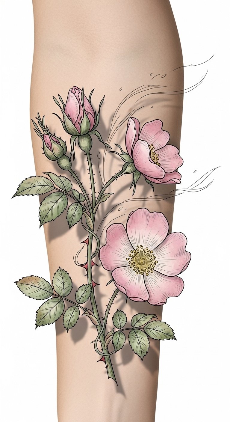 Ideal placements: inner forearm for visibility and daily reminder, shoulder blade for a graceful sweep with clothing, or ankle for a subtle, whimsical touch; sizing can be adjusted to keep botanical details crisp and meaningful.
