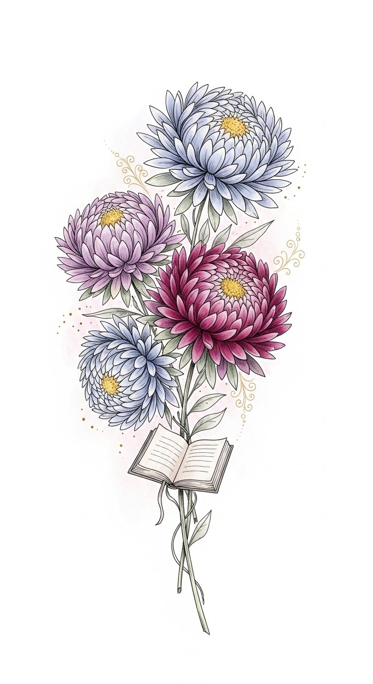 Asters, often celebrated for their delicate petals and vibrant hues, symbolize love and wisdom, making them a perfect choice for a tattoo that speaks to the heart.