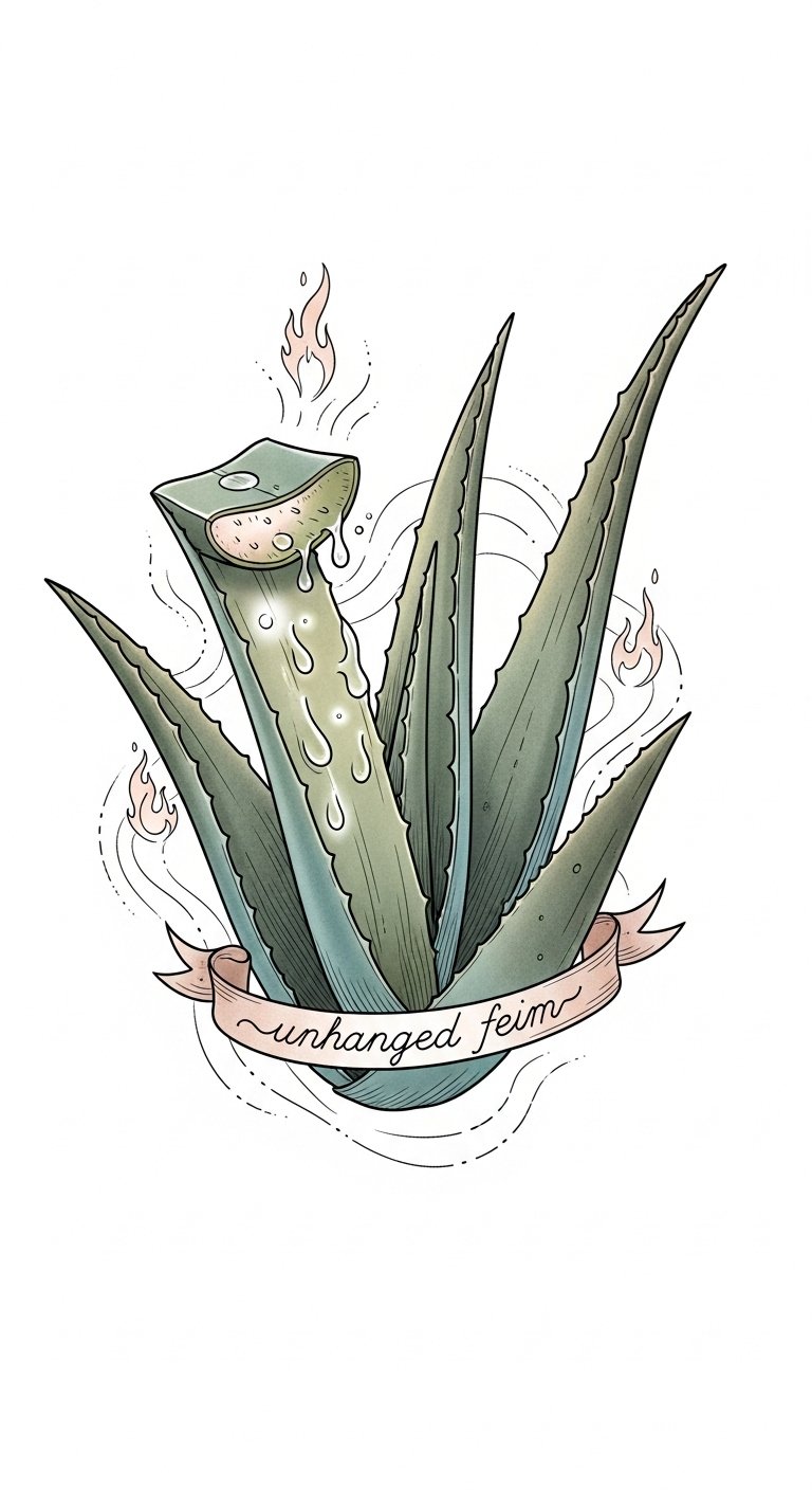 Its cooling properties help reduce swelling and speed up healing, allowing you to embrace your new ink with confidence and freedom, while keeping discomfort at bay. The design symbolizes healing and protection — the aloe represents soothing care, the cooling waves evoke calm and recovery, and the fading flames signify inflammation diminishing.