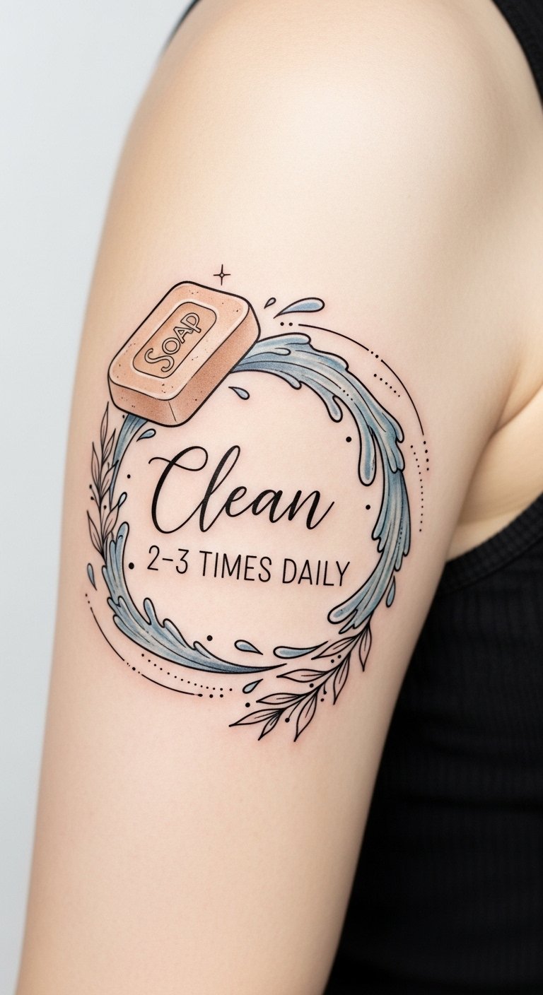 Caring for your new tattoo is essential to guarantee it heals beautifully and retains its vibrancy. You need to start with gentle cleaning and follow up with proper moisturizing techniques. It’s not just about the ink; the aftercare plays a significant role in your tattoo’s longevity. Curious about the specific steps you should take to get the best results? Let’s explore these important tips to achieve flawless healing. This design uses the text as both literal content and visual rhythm, symbolizing attentive stewardship over body art; water ripples evoke cleansing and renewal, floral elements represent growth and recovery, and geometric accents convey structure and routine. Placed on the forearm or shoulder, it reads easily and serves as a mindful reminder of healing practices while allowing space for scars or swelling during recovery.