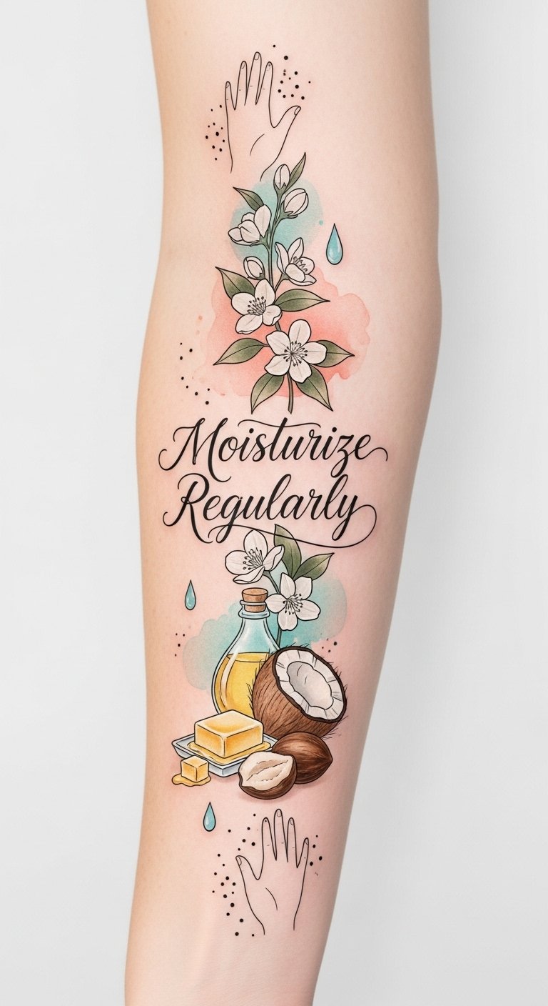Opt for fragrance-free, natural moisturizer types like coconut oil or shea butter. Use gentle application techniques, dabbing with clean fingertips rather than rubbing. This not only soothes your skin but also enhances your tattoo’s vibrancy, allowing your art to flourish beautifully. Embrace your freedom of expression!