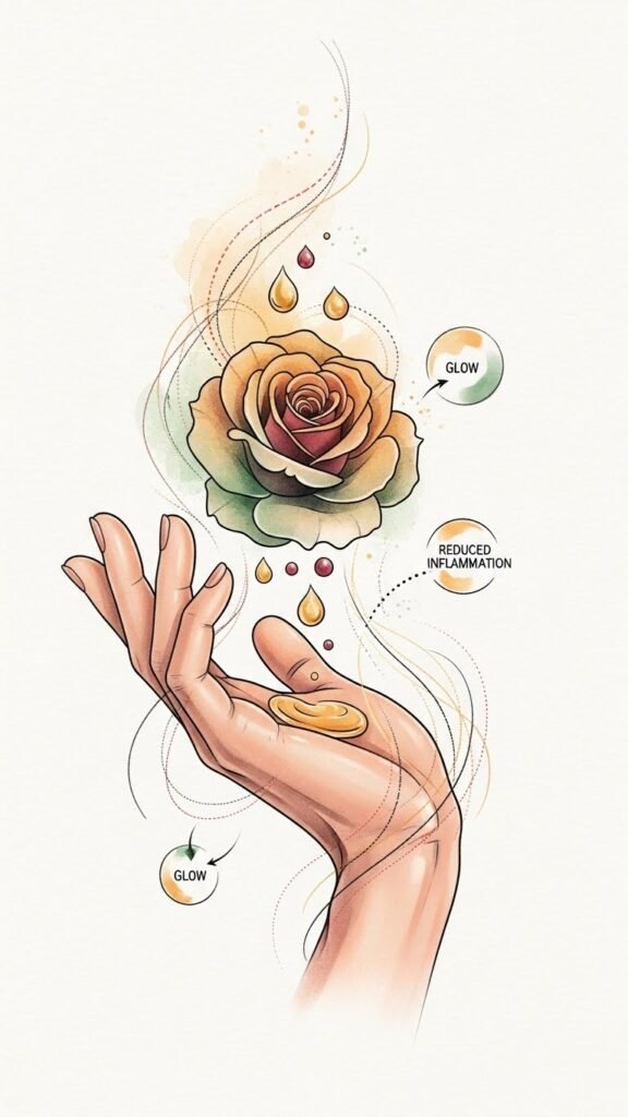 The small skin-type icons acknowledge personalized care, evoking reassurance and attentiveness.