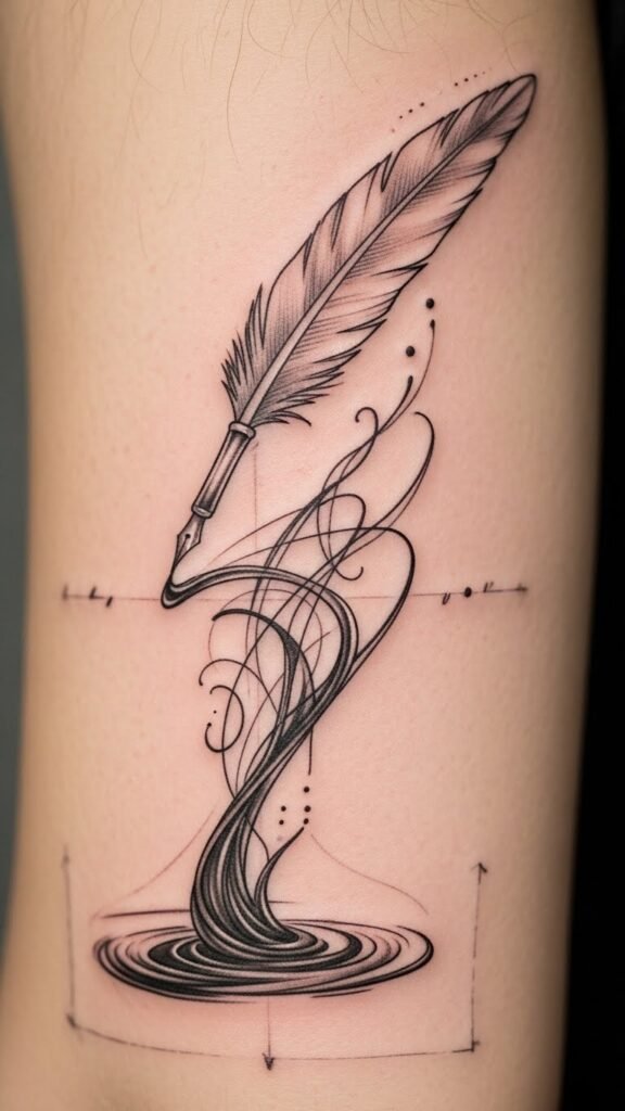Be prepared for touch-up costs, which can range widely. Embrace the process, ensuring your ink always reflects your spirit and style with clarity. The quill-to-ink design symbolizes the ongoing nature of personal expression and care—how beauty matures and sometimes needs tending.