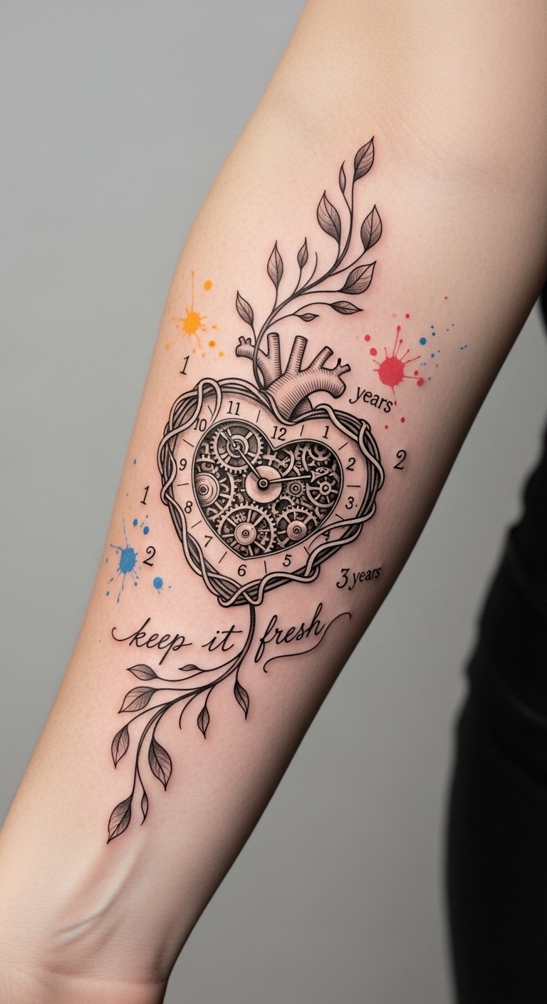 Best placed on the inner forearm or outer calf where it’s visible to the wearer, the piece serves as a personal reminder to continue moisturizing and honoring the tattoo’s longevity.
