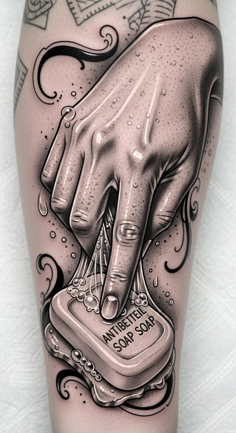 After ensuring your canvas is properly prepared with controlled skin tension, the next step involves thoroughly cleansing the area with antibacterial soap.