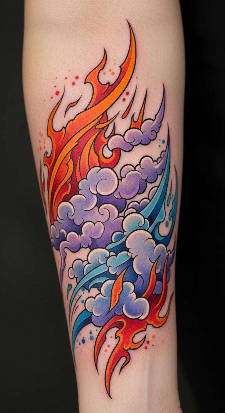 As you explore the vibrant world of fire and cloud tattoos, you’ll discover how these colorful expressions can evoke powerful emotions and personal narratives.