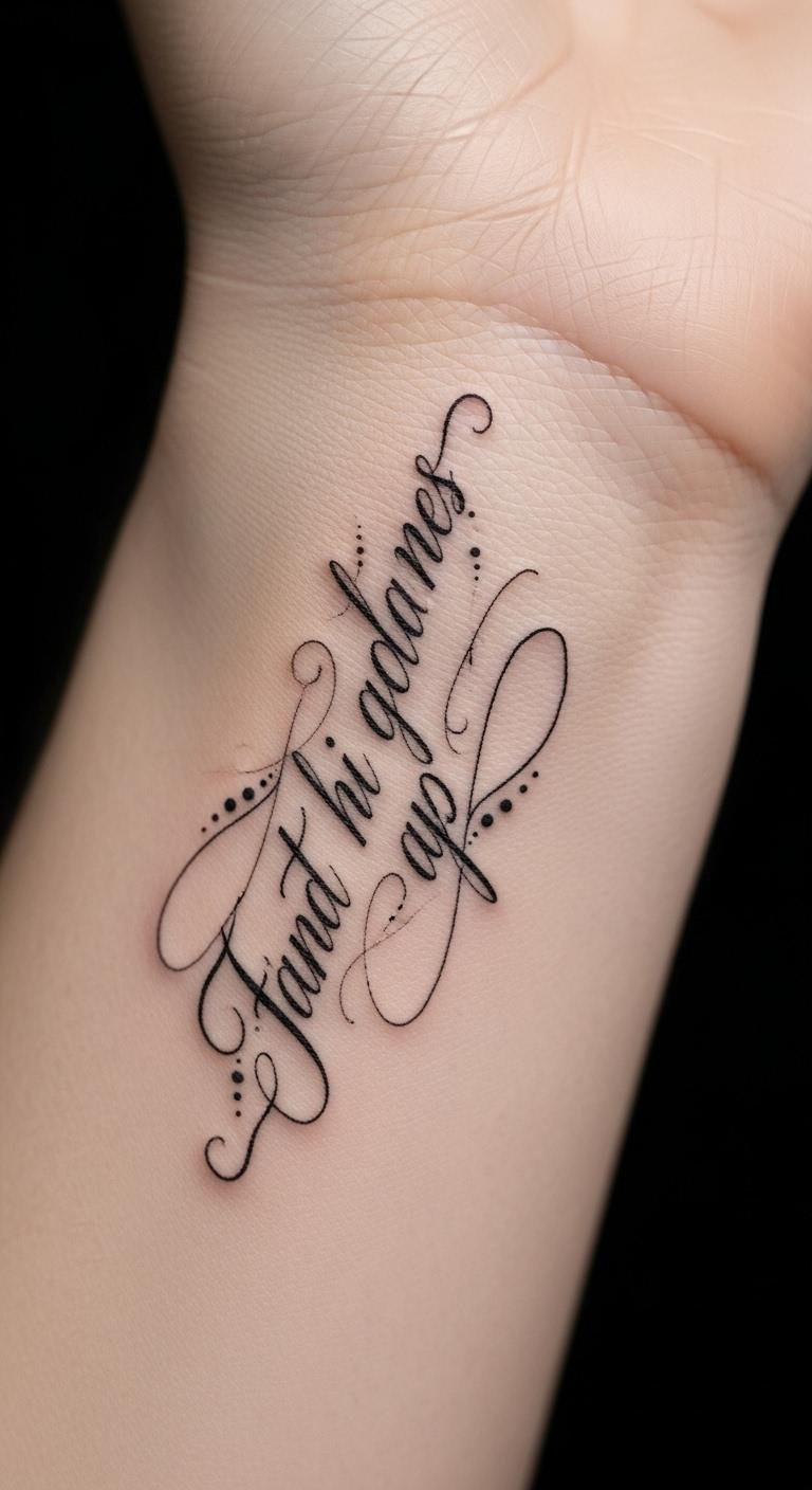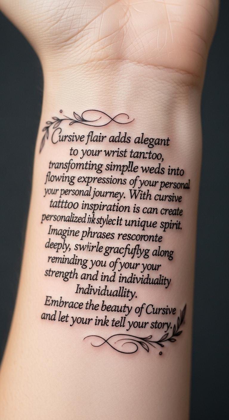 Cursive flair adds an elegant touch to your wrist tattoo, transforming simple words into flowing expressions of your personal journey.