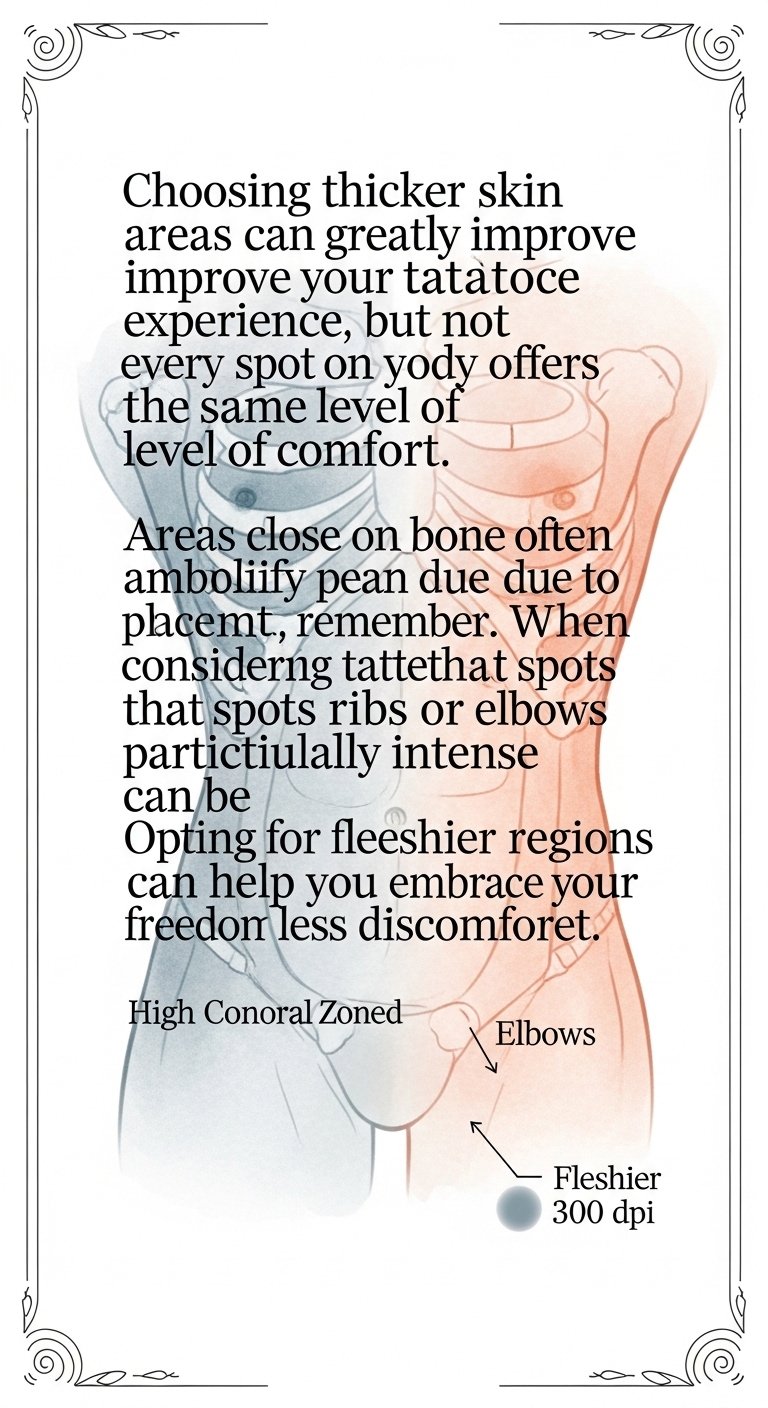 Opting for thicker skin areas can markedly enhance your tattoo experience, as these regions tend to be less sensitive and more resilient to pain.