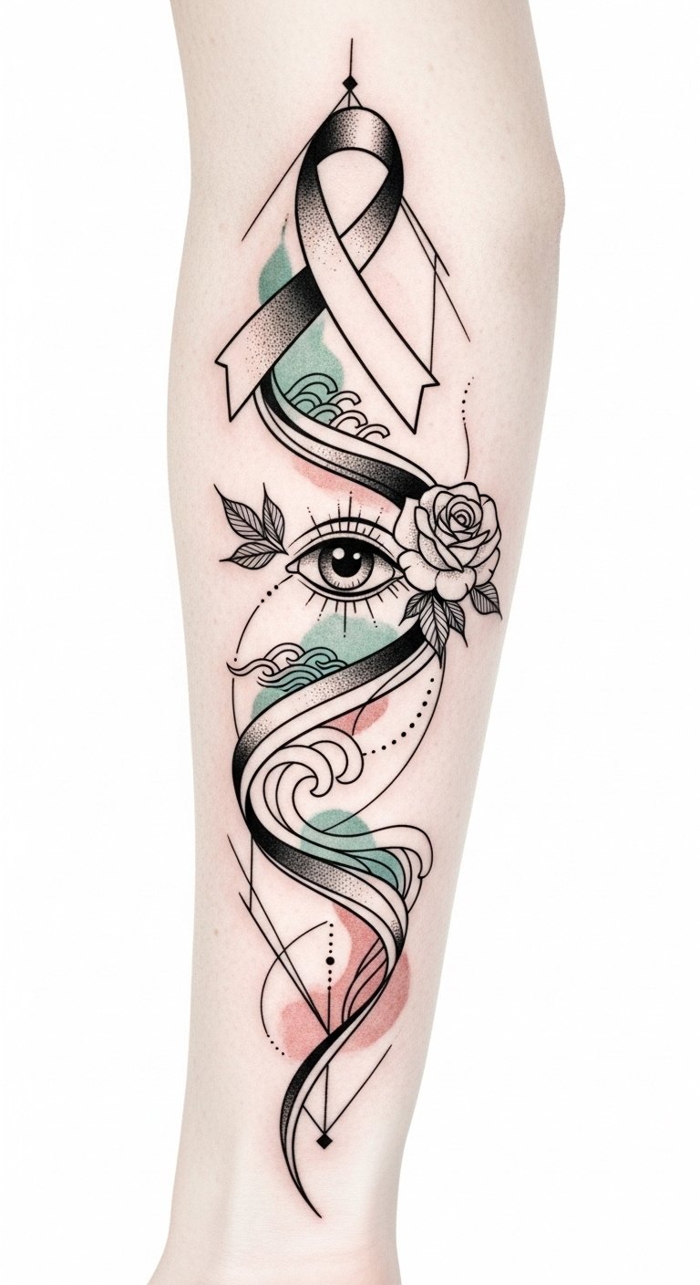 Ideal placements are forearm or rib to allow the ribbon to flow with the body’s contours, reinforcing the theme of transformation and inner strength.