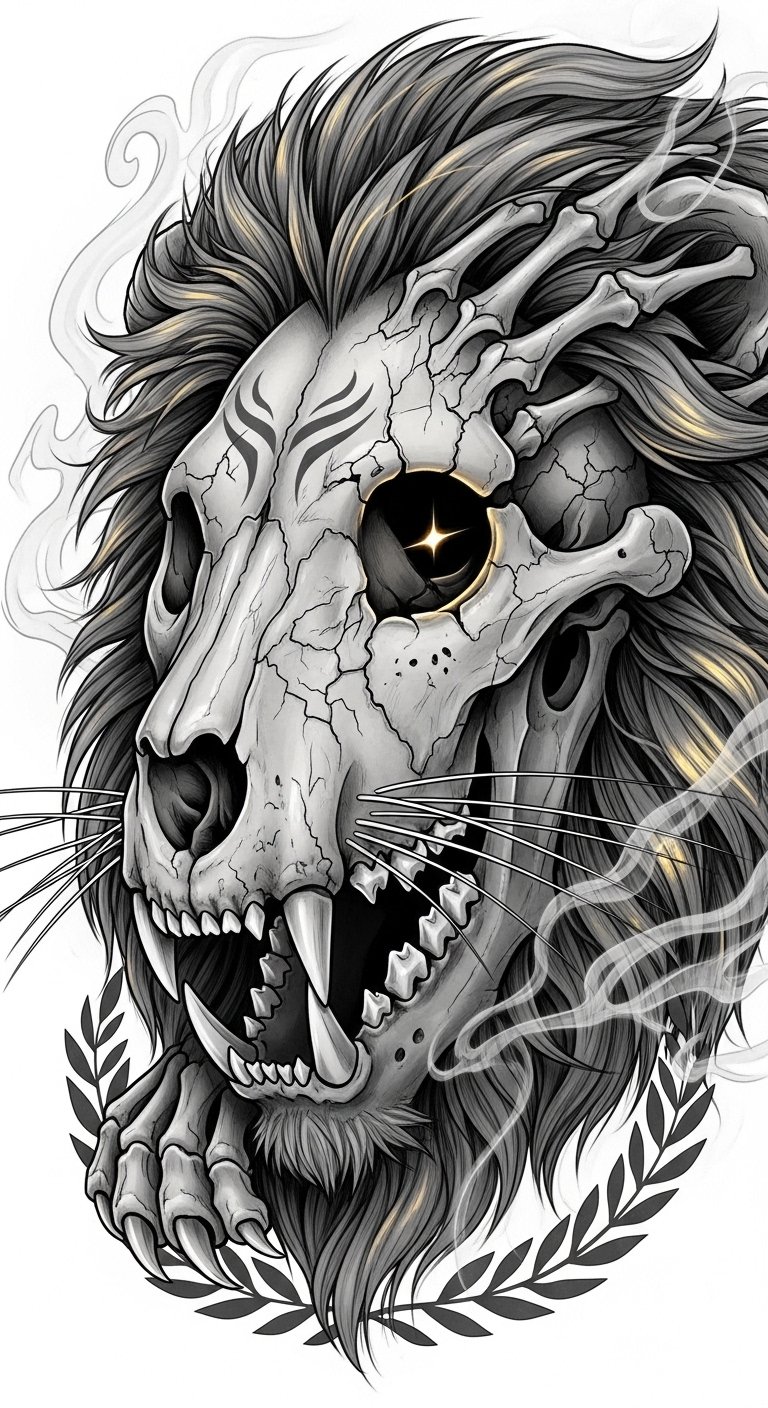 A lion skull design captures the essence of courage, reminding you to embrace life’s challenges. The lion skull symbolism speaks to the balance of power and vulnerability, making this tattoo a bold statement about your journey and personal freedom.