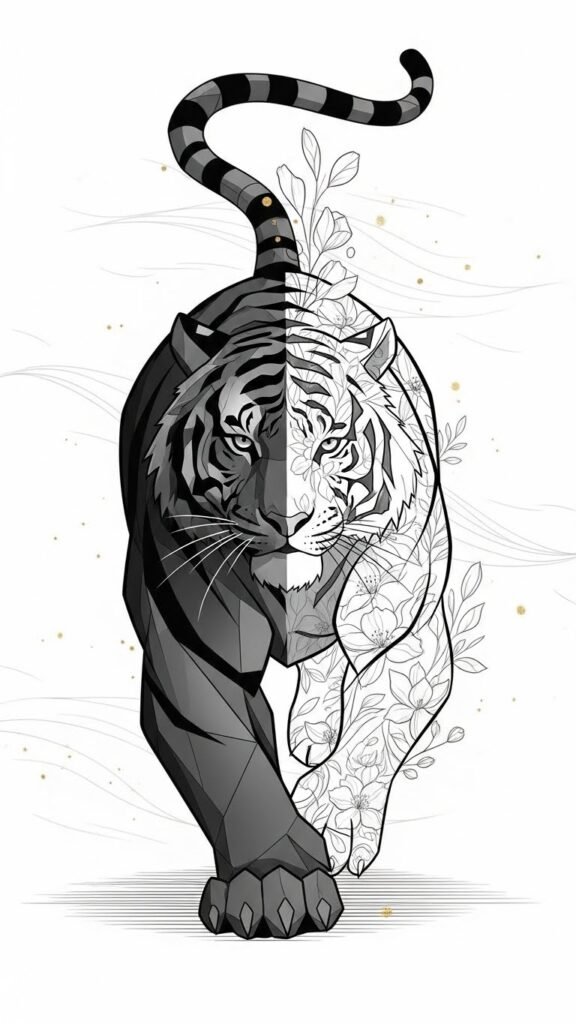 This duality embodies the essence of tiger mythology, where symbolic artistry captures both might and grace.